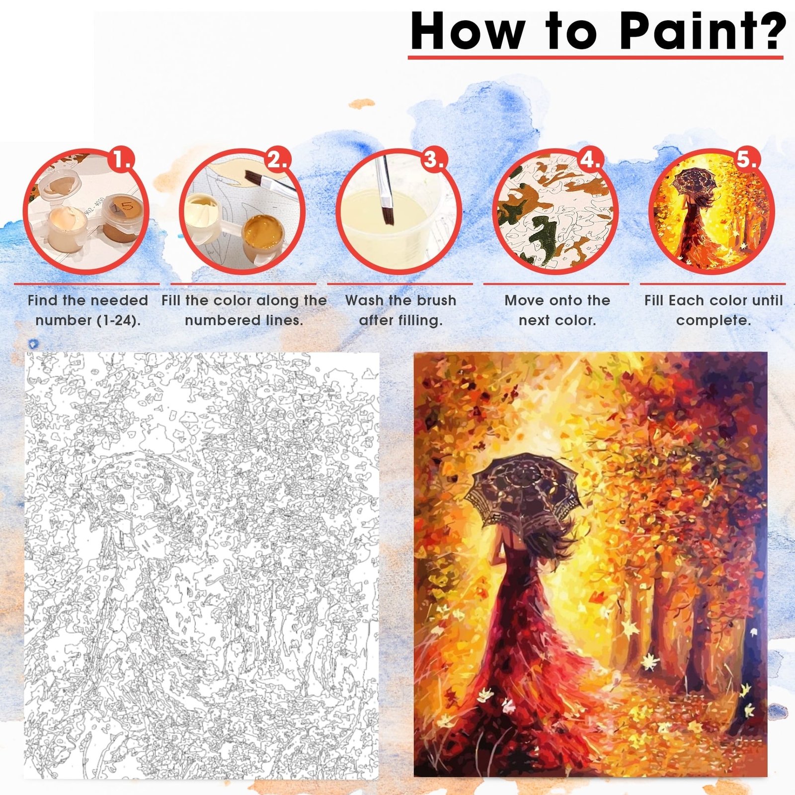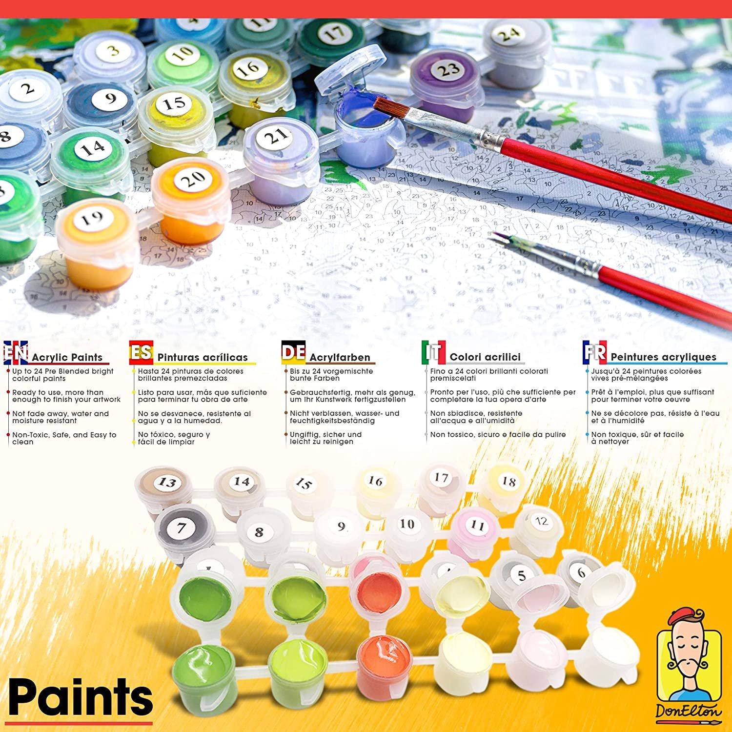 Painting By Numbers kit is an ideal introduction to the pleasures of painting, regardless of experience or age. It is the perfect first step for the beginners to enjoy the painting artwork. With DonElton’s Paint by numbers kit, simply apply the numbered colors in the blanks with the same number on canvas to create your own masterpiece. It offers all the basic painting skills, a sense of accomplishment and amusement. You can create your own masterpiece for collection.nDonElton’s Paint by numbers kitcan even be framed to make a fantastic picture for your wall.