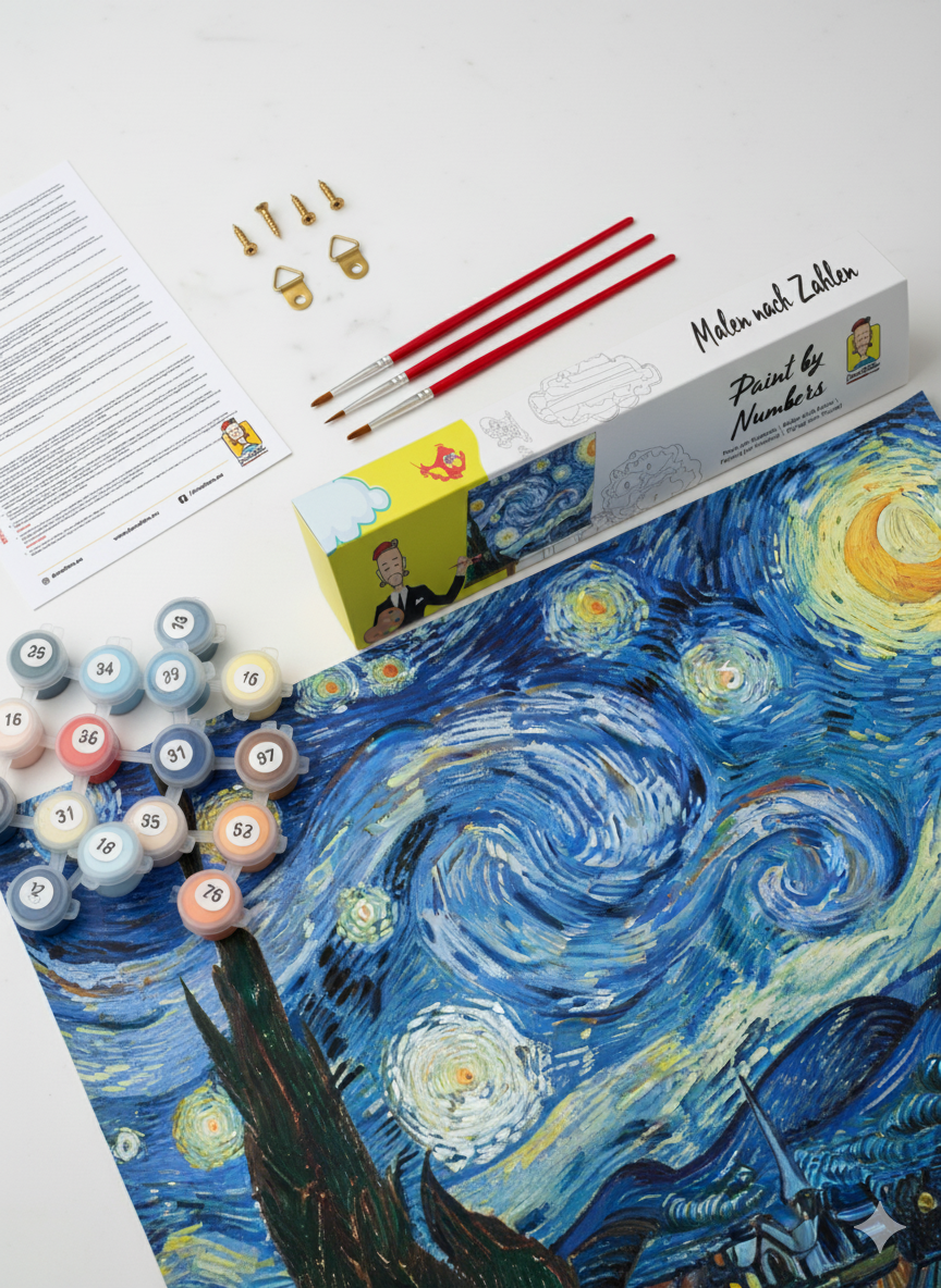 - 1 × Pre-drawn numbered canvas, unframed (40 × 50 cm)
